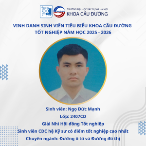 • Ngọ Đức Mạnh (2407CD) – Cao nhất chuyên ngành Đường ô tô và Đường đô thị
