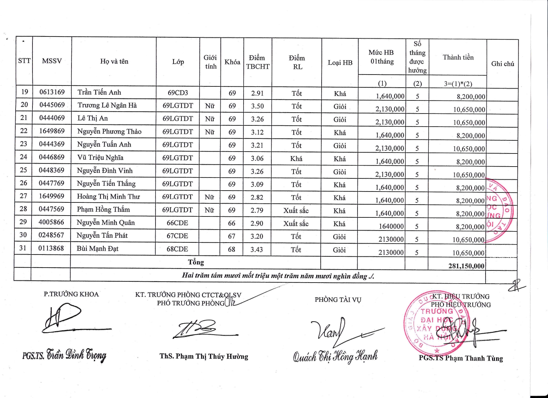 Khoa Cầu đường thông báo học bổng kỳ 1 năm học 2024 – 2025: